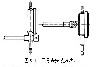 1 用百分表或千分表測(cè)量零件時(shí),測(cè)量桿必須垂直于被測(cè)量表面。圖5-4所示。即使測(cè)量桿的軸線與被測(cè)量尺寸的方向一致,否則將使測(cè)量桿活動(dòng)不靈活或使測(cè)量結(jié)果不準(zhǔn)確。