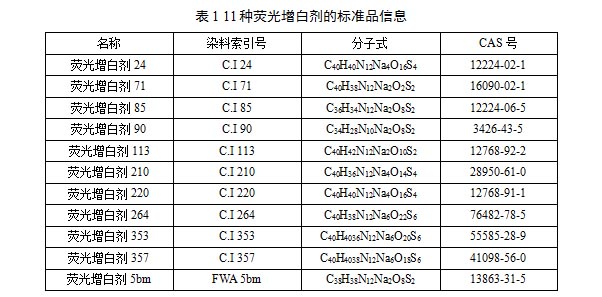 11種熒光增白劑標(biāo)準(zhǔn)品的基本信息見表1。