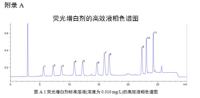 本方法規(guī)定了食用菌、大米、小麥粉和小麥粉制品、淀粉和淀粉制品中11種二苯乙烯類陰離子型熒光增白劑的高效液相色譜測(cè)定方法。11種熒光增白劑包括熒光增白劑24、熒光增白劑71、熒光增白劑85、熒光增白劑90、熒光增白劑113、熒光增白劑210、熒光增白劑220、熒光增白劑264、熒光增白劑353、熒光增白劑357、熒光增白劑5bm。