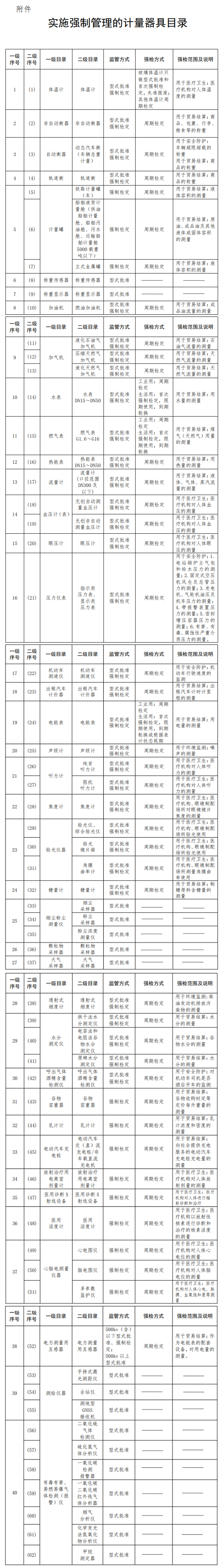 關(guān)于調(diào)整實(shí)施強(qiáng)制管理的計(jì)量器具目錄的公告